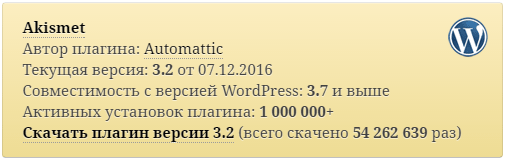 Вот такую табличку с актуальной информацией о плагине из репозитория я вывожу в конце каждой статьи о каком-либо плагине. Для ее вывода я раньше использовал свой собственный шорткод-обертку для плагина WP Plugin Info. Но, в конце концов, мне надоел такой "костыль" и я написал свой собственный шорткод вывода информации о плагине. Меня несколько раз спрашивали, как сделать подобную табличку с информацией о плагине, поэтому я оформил этот шорткод в маленький плагин, которым могу с вами поделиться.