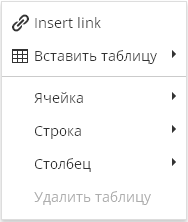 Это абсолютно бесполезное меню, которое почти целиком состоит из меню вставки таблицы. Зачем оно нужно я так и не понял – родное контекстное меню браузера просто на порядок полезнее. Следующая опция касается диалога вставки ссылок. По умолчанию этот диалог выглядит так:
